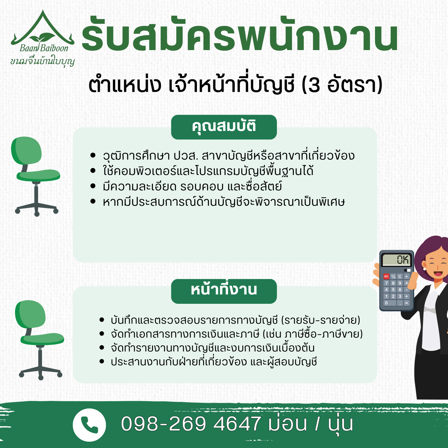 1. เจ้าหน้าที่บัญชี (วุฒิ ปวส.) 3 อัตรา
