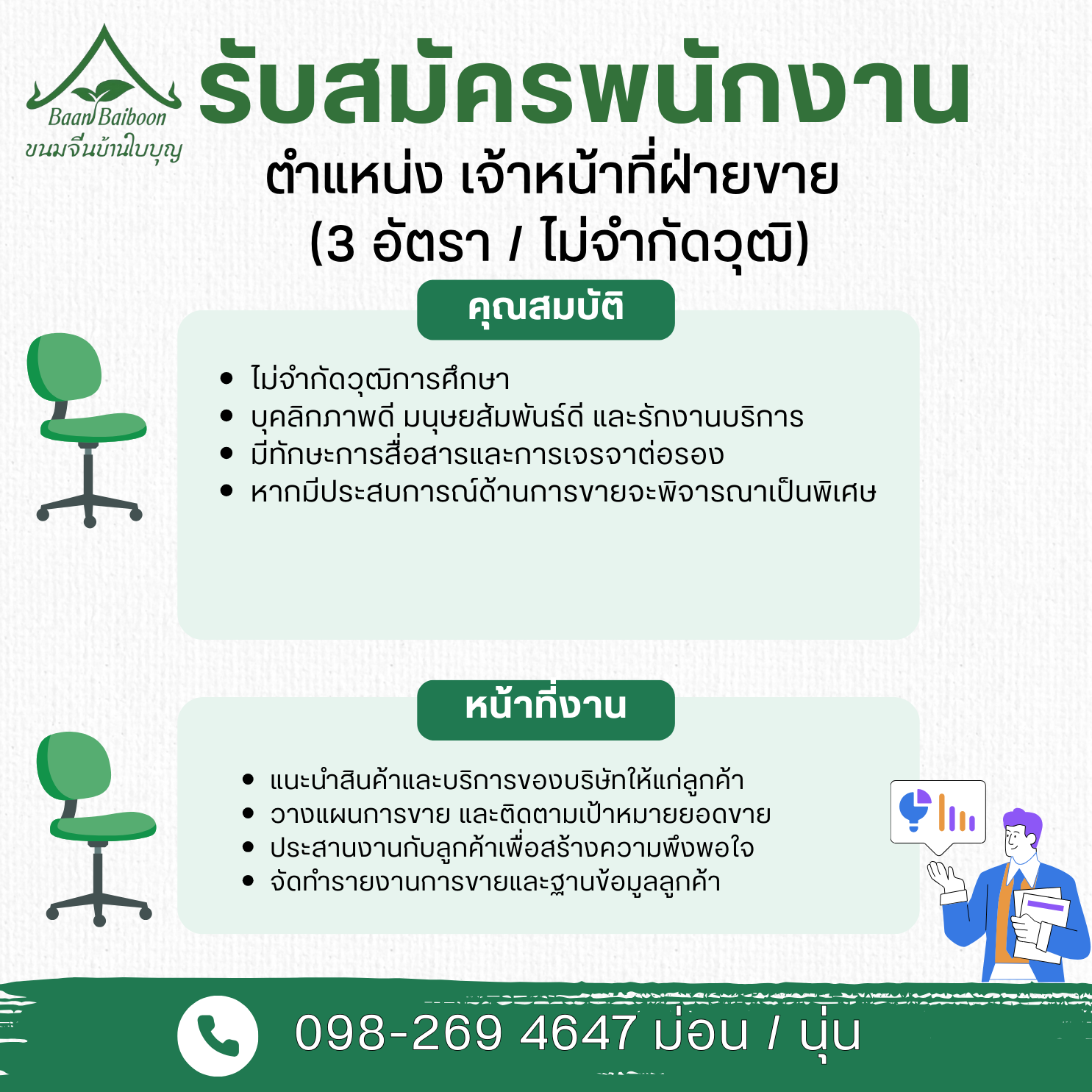 2. ฝ่ายขาย (ไม่จำกัดวุฒิ) 3 อัตรา (ขับรถได้)